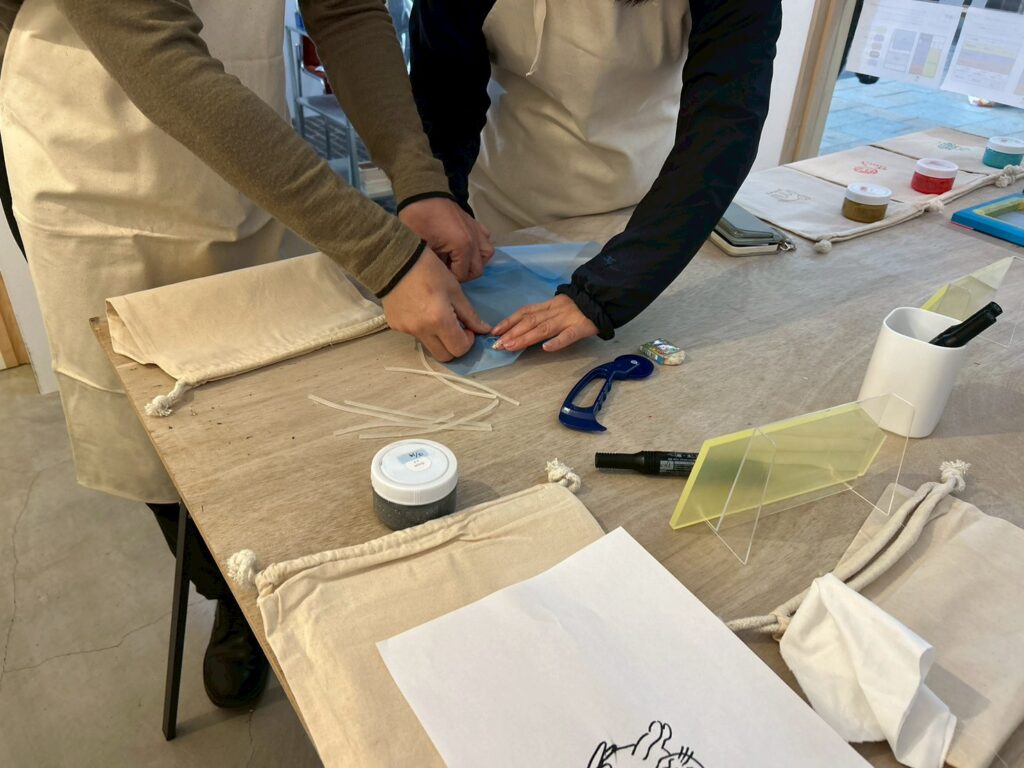 オープン当日には、シルクスクリーン体験のワークショップを行いました。
